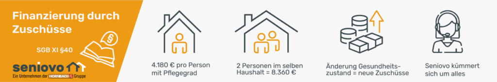 Dank dem Zuschuss der Pflegekasse von 4.180 Euro realisiert Seniovo diesen Umbau kostenlos für Sie – inklusive Antragstellung und Abrechnung.